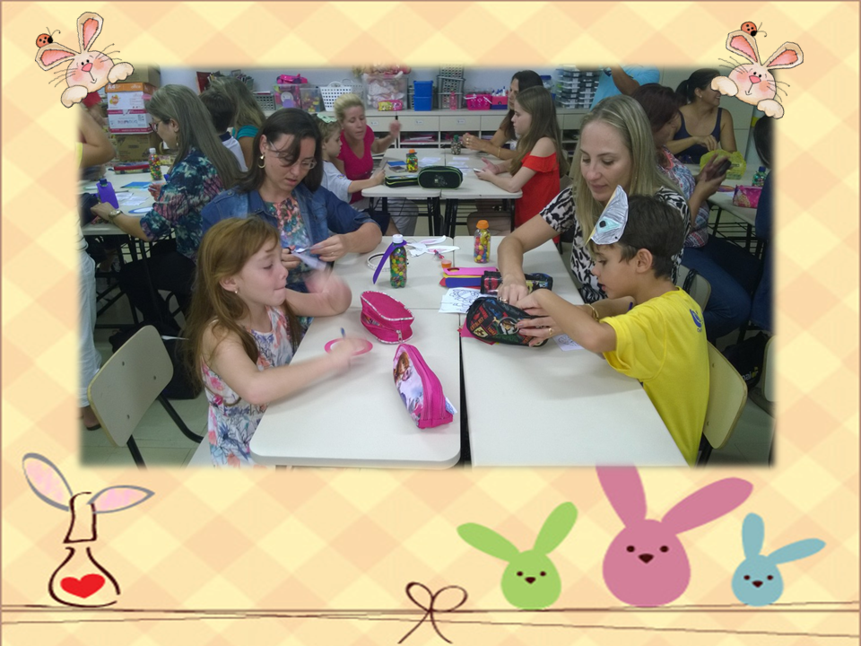 • No momento seguinte, dramatizamos a história – “O que tem dentro de um ovo de Páscoa?”, buscando refletir com os pais a simbologia dos ovos de Páscoa.